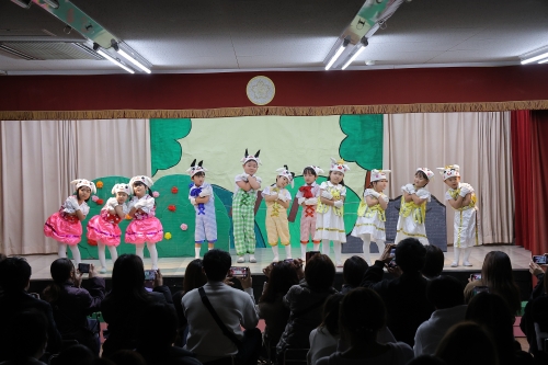 年中組は、「ありんこのアリー」と「三匹のヤギとトロル」のオペレッタを行いました。